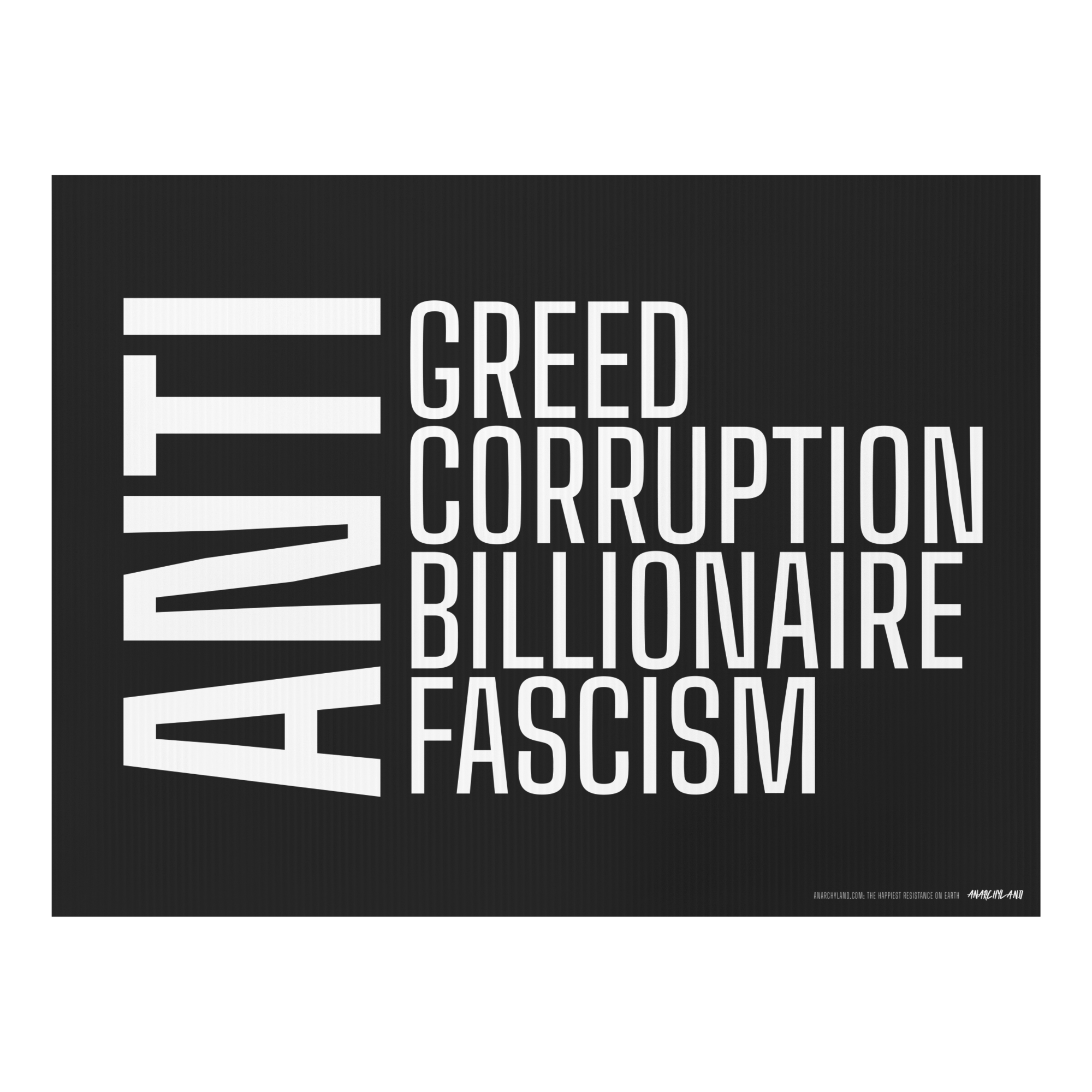 Anti-Greed. Anti-Corruption. Anti-Billionaire. Anti-Fascism. Yard Sign