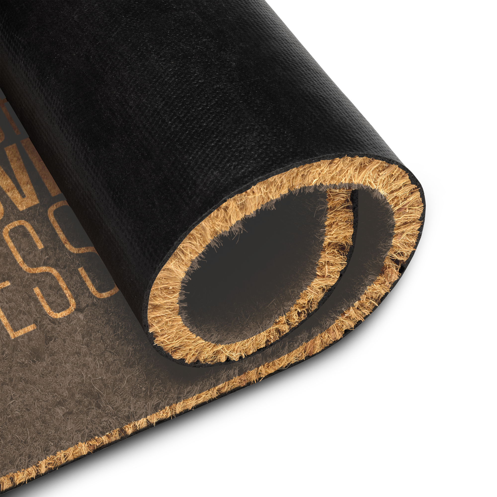 The Knockout version does something the others don’t — the letters aren’t printed on the mat, they’re cut out of the darkness, letting the natural warmth of the coir fiber form the words themselves. It’s the same declaration, expressed through the material rather than on top of it. Tactile, warm, and unlike anything you’d find anywhere else.
