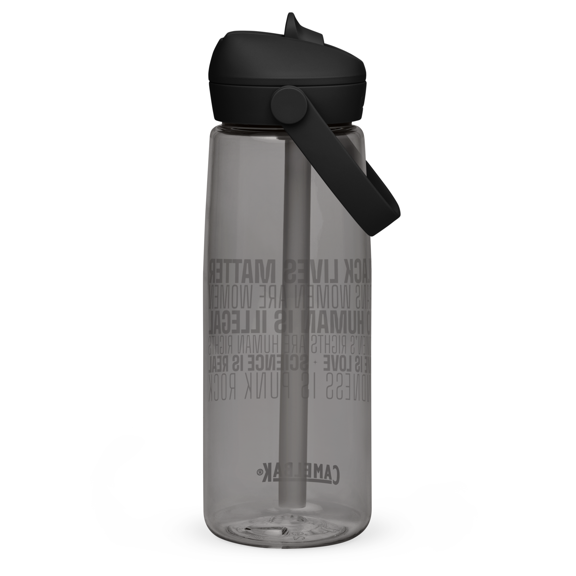 This isn’t just a water bottle — it’s a rolling declaration. The We Hold These Truths graphic wraps the bottle with everything that should be obvious by now: Black Lives Matter. Trans Women Are Women. No Human Is Illegal. Women’s Rights Are Human Rights. Love Is Love. Science Is Real. Kindness Is Punk Rock.
